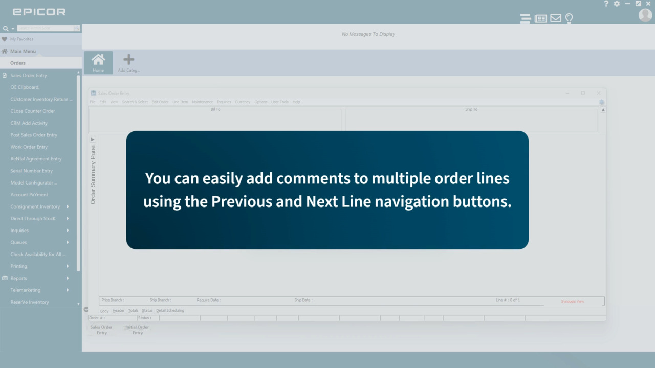 You can easily add comments to multiple sales order line items by using the Previous and Next navigation buttons.